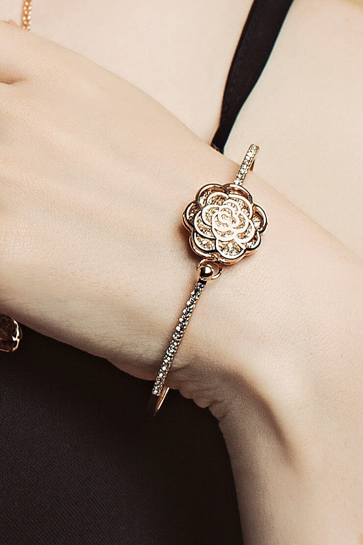 Bella is a simple but classic piece in rose gold with a gorgeous silhouette of a rose and surrounded by delicate zircons