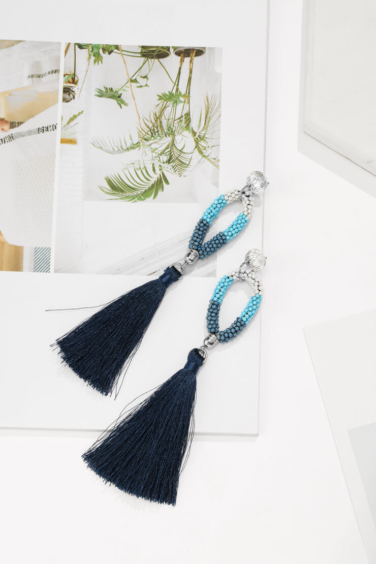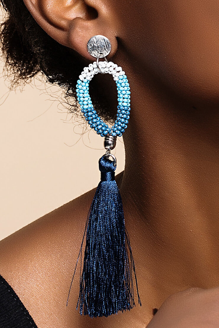 Blue lagoon is a gorgeous cluster of navy, sky blue and white beads in the formation of teardrops, falling into vibrant navy blue tassels. The softness of this piece will ride with your romantic adventures and supporting the sacredness of your spirit.