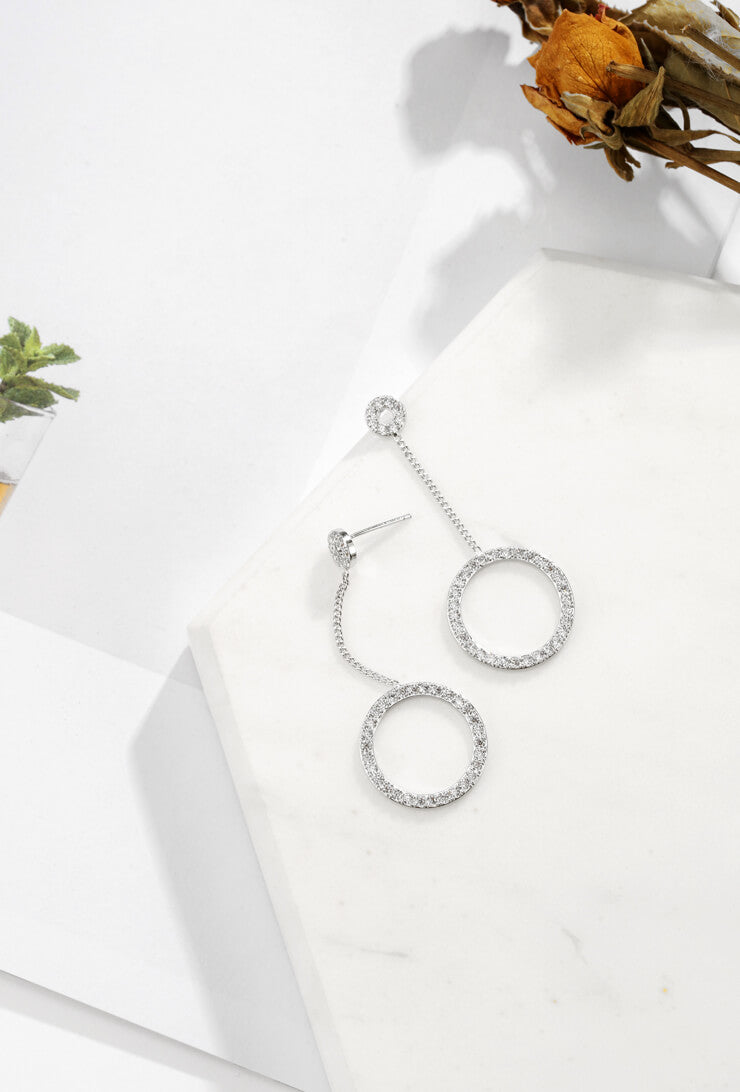Big, twinkly zirconias offset by a circle of smaller sparkles will throw a rainbow of light as these earrings sway with the sashay of your walk. Timeless yet modern, they are truly for eternity.