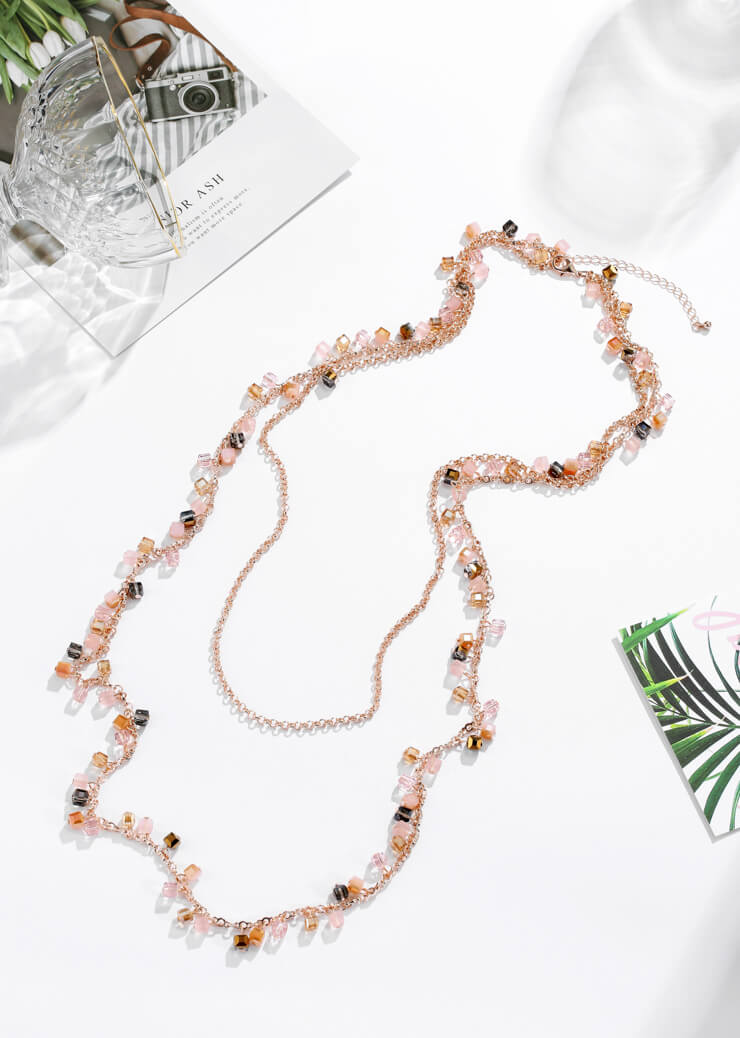 This eye catching piece is a combination of multi layered rose gold chains. Delicately bursting with twinkling gems, this firecracker of a piece brings out the fun and joy within.