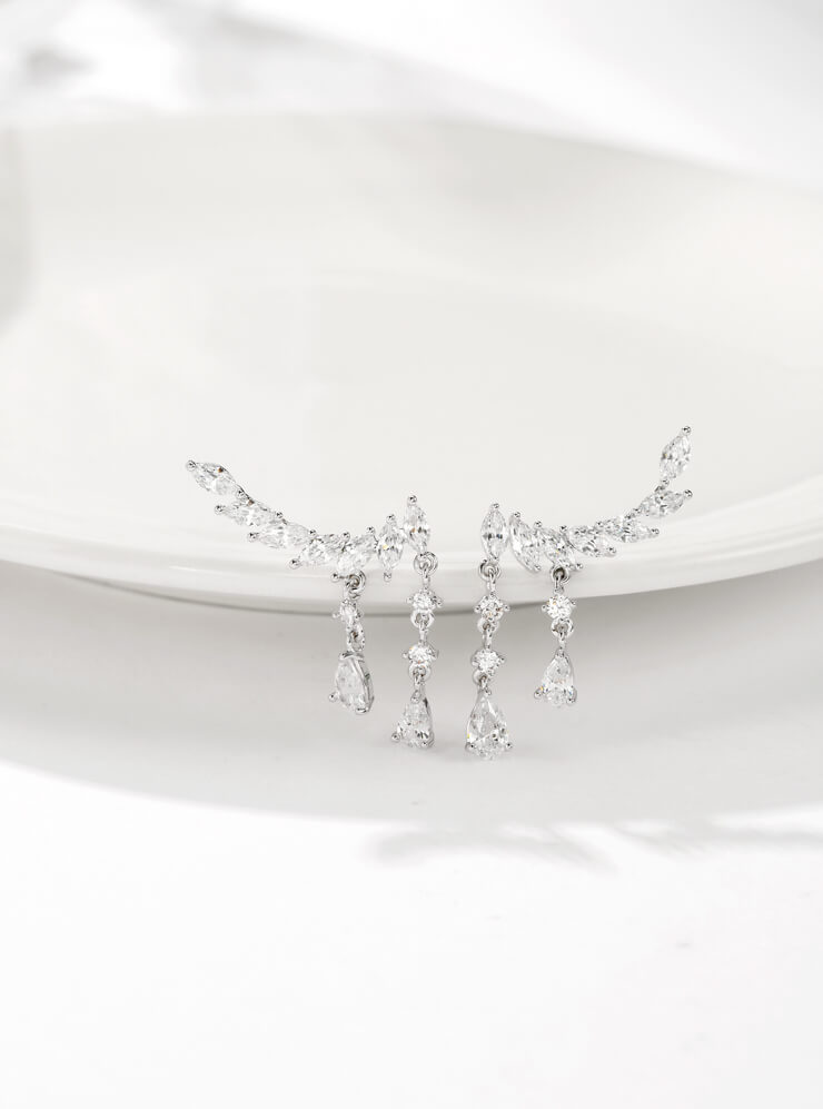 Sweet yet fierce, she is an enigma. Modern yet delicate, she faces the world with an enigmatic smile, unafraid to be herself in all her feminine glory. These delicate cuffs combine teardrop zircons to add an extra element of femininity.