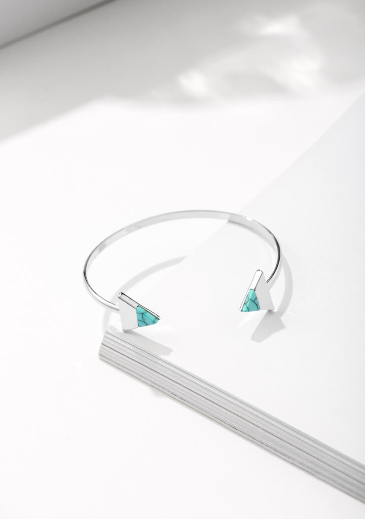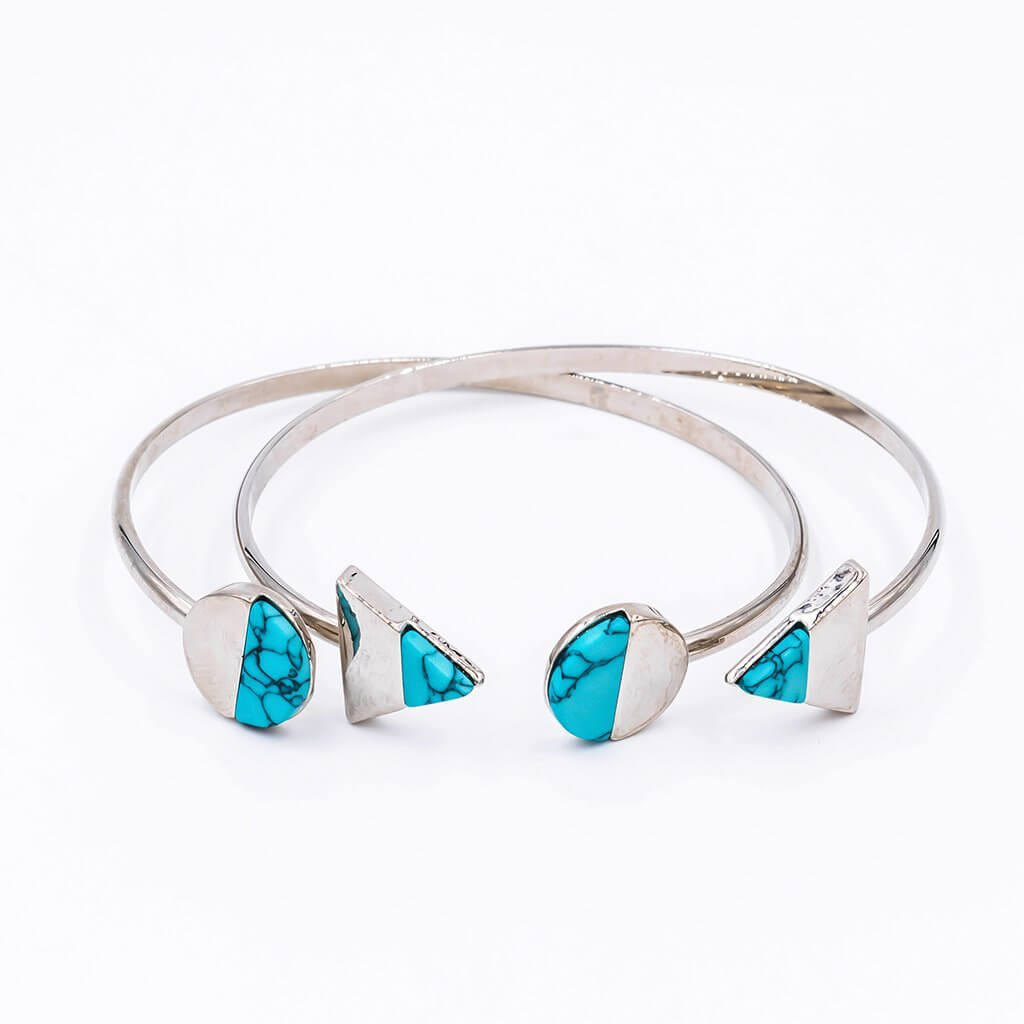 Indian wolf embodies the boho spirit in all of us, these platinum plated set of cuffs is set with finishing touches of howlite turquoise.