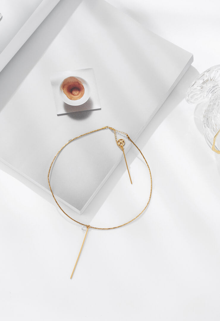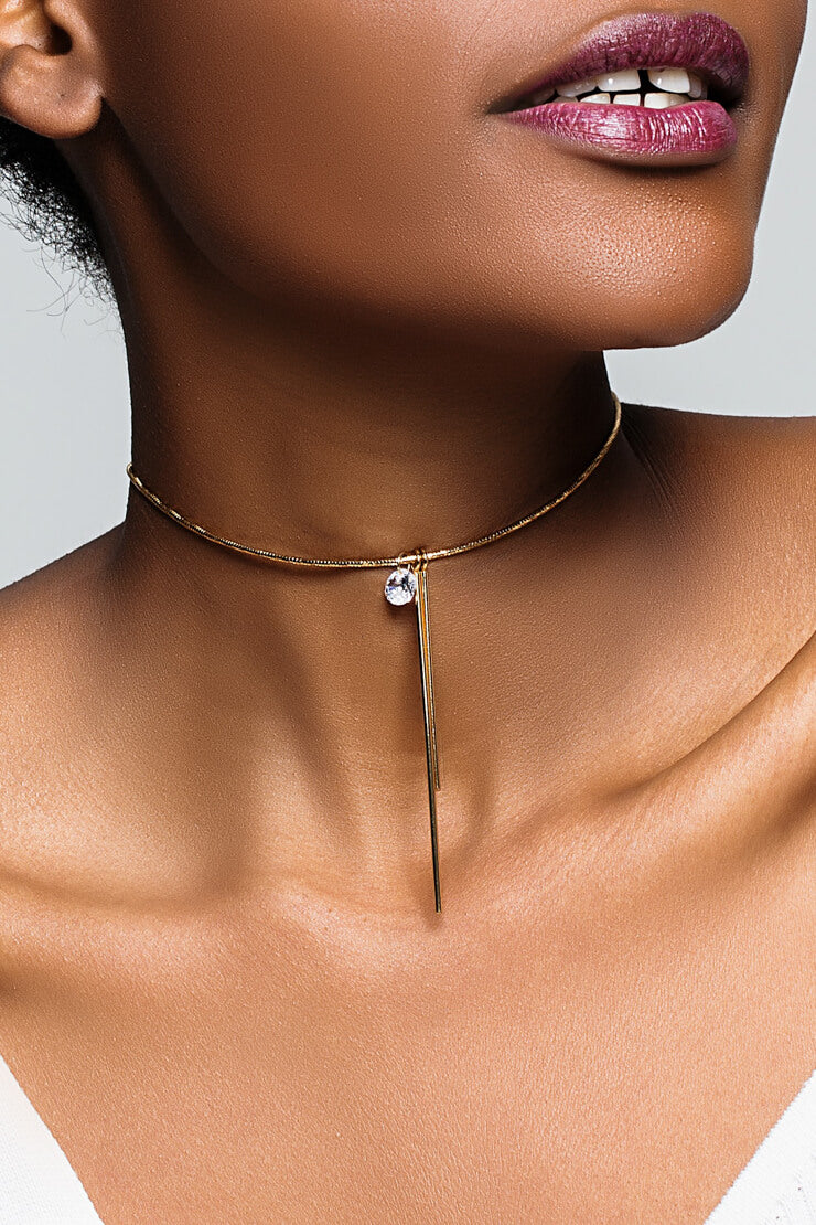 This yellow gold omega chain has a focal point of a solitaire diamontie and solid plated gold bars. This piece is the Supernatural power within that can be transmitted……. Inner beauty.