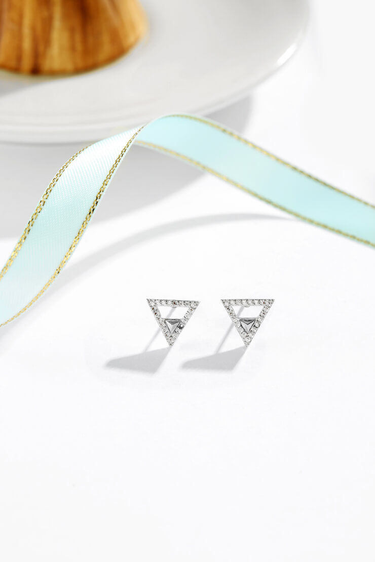 Silver, sparkles and triangles with a modern edge. These are small and delicate pieces that you can add for an understated flare on your outfit.