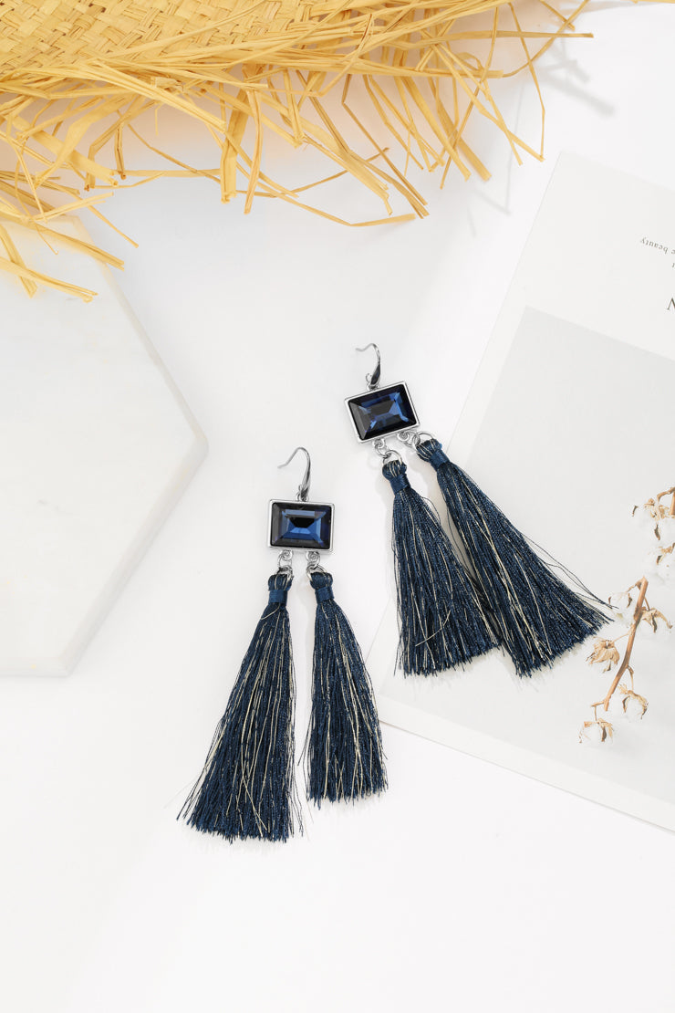 This statement piece is a colossal rectangle of a deep sapphire gem with a down pour of defined navy blue tassels. Feel the powerful force of the natural creature that embraces your creative instincts of wearing the Sapphire Goddess.
