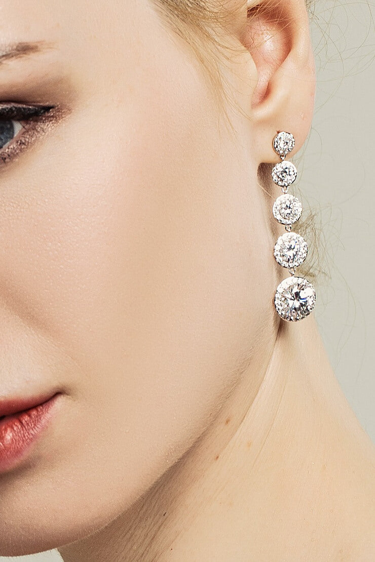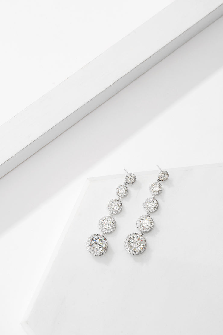 Do you crave the elegance of diamonds? Consider yourself a woman of timeless elegance? These cascading zircons are for the woman with discerning taste and style. The length of the drop and the magnificance of the sparkle make these a statement piece.